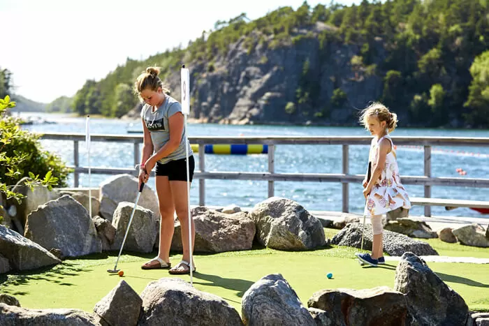 Utmana familjen på en spännande runda äventyrsgolf! Vår vackra bana för äventyrsgolf ligger på Havssidan, precis intill Café Magasinet, med fantastisk utsikt över vattnet.