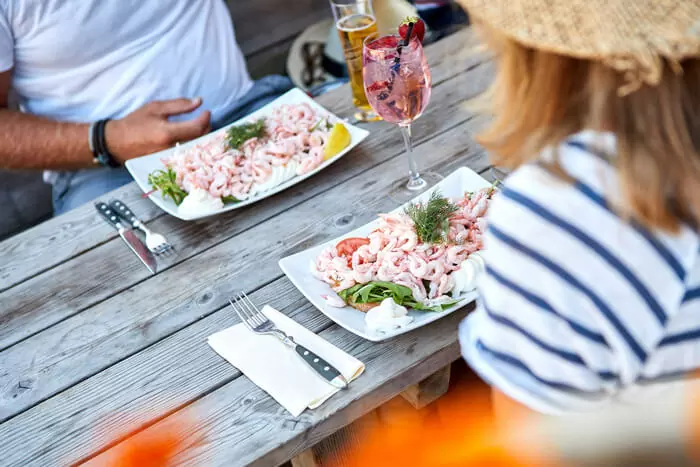 Direkt vid strandkanten hittar du Lagunen Kök & Bar med fantastisk havsutsikt över viken. Här kan du njuta av god mat och dryck. Vad sägs om en härlig drink i solen? Eller en god räkmacka med räkor fångade i Kosterhavet? Till Lagunen Kök & Bar är alla välkomna, även våra fyrbenta vänner!